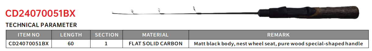 Pole body strong, ice raft dual use; Single section and flat fish tip, the fish signal is sensitive; Pure wood special-shaped handle, comfortable